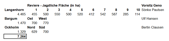 Der Hegering LANGENHORN wurde im Jahr 1916 gegründet und hat aktuell 90 Mitglieder. Die Aufnahme möglichst aller Jungjäger in den einzelnen Revieren ist uns ein großes Bestreben. Die Reviere sind in 14 gemeinschaftlichen Jagdbezirken organisiert und bejagen eine Fläche von insgesamt rd. 7.300 Hektar.